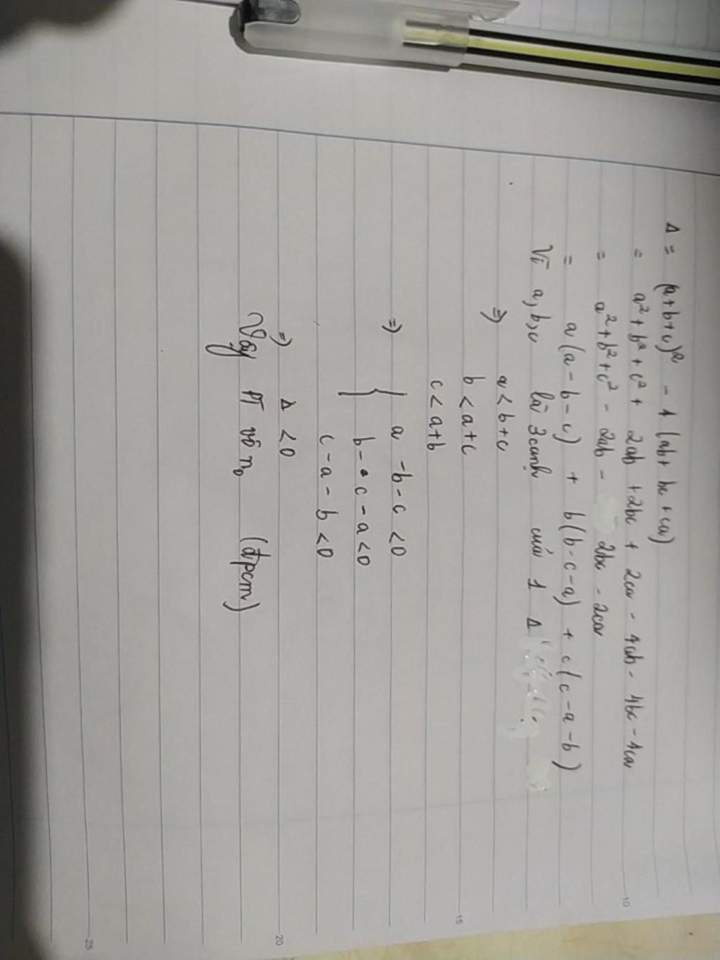 tại sao có đồng thời cả 3 cái kia lai suy ra đc đen ta nhỏ hơn 0