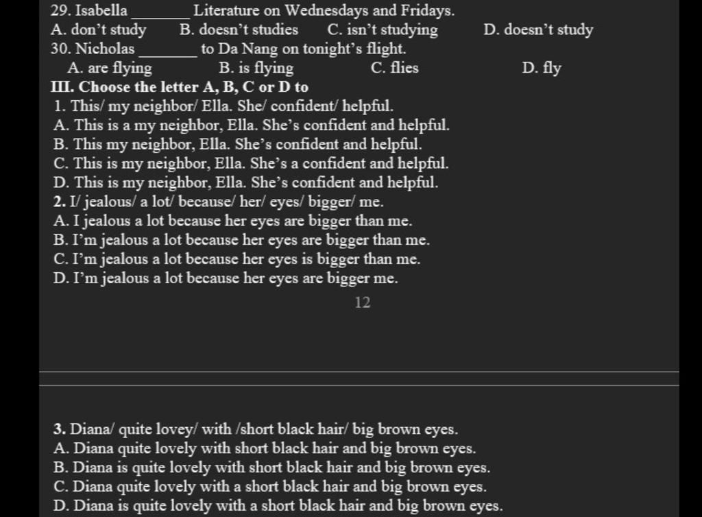 `29.` Fridays and Wednesdays là hiện tại đơn.
