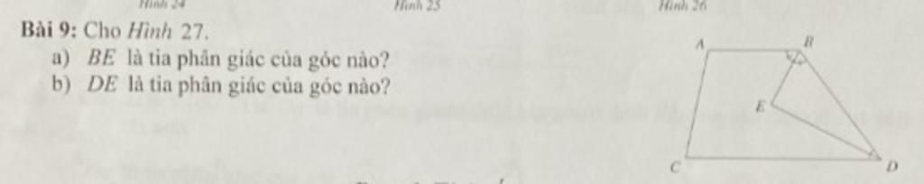`a)` `BE` là tia phân giác của `\hat{ABD}`
