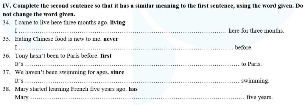 38.Mary has been learning French for five years/Mary has learnt French for five years