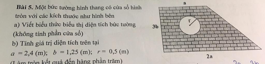 Bài 5. Một bức tường hình thang có cửa sổ hình