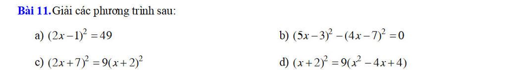 `b)(5x-3)^2 - (4x-7)^2 =0`