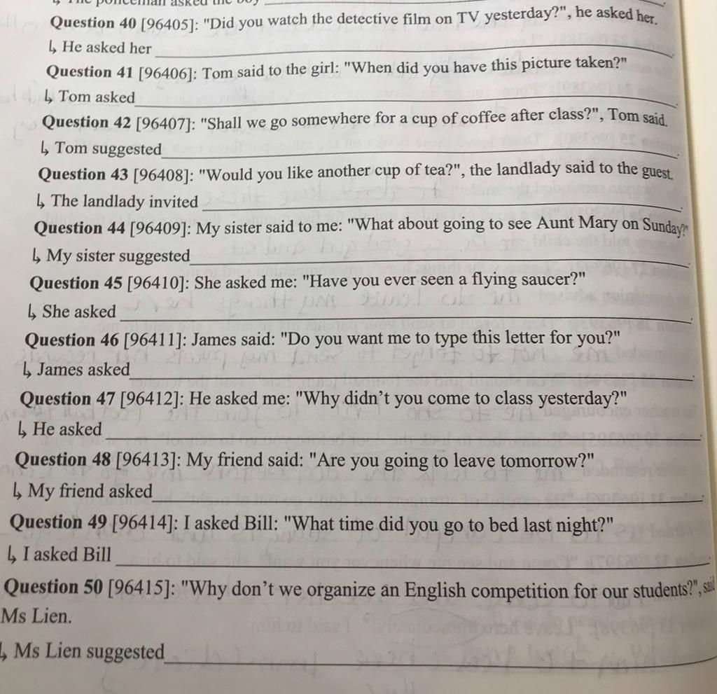 42. Tom suggested going somewhere for a cup of coffee after class.