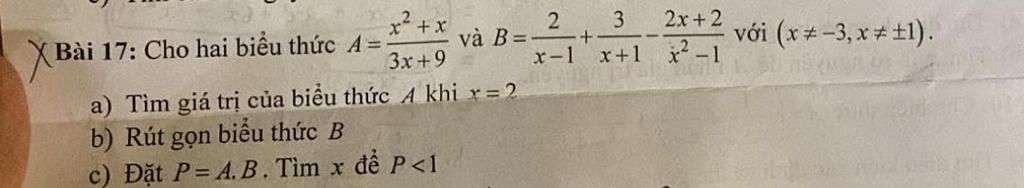 Vậy `:` để `P < 1` thì `x > -3;x \ne -3;x \ne +-1`