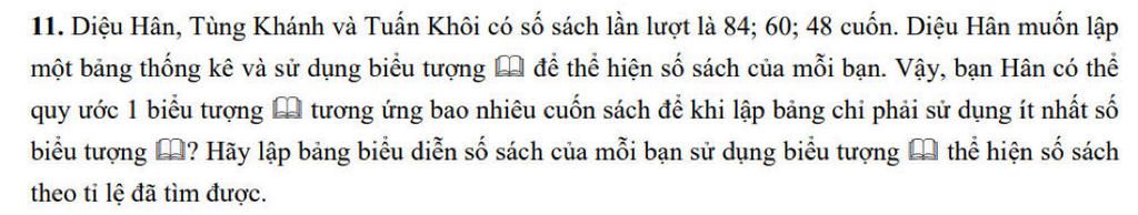 Để lập bảng với số biểu tượng sách ít nhất thì số số tương ứng với một biểu tượng là ước chung lớn nhất của `84;60` và `48`