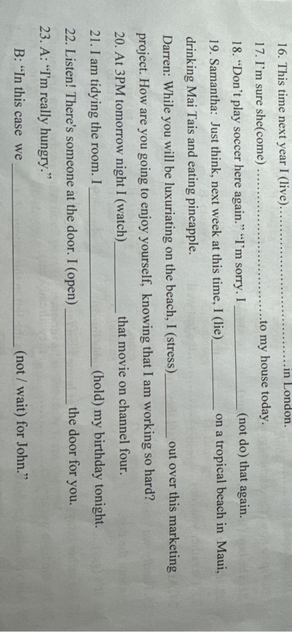 `-` Dấu hiệu của thì tương lai tiếp diễn `:`