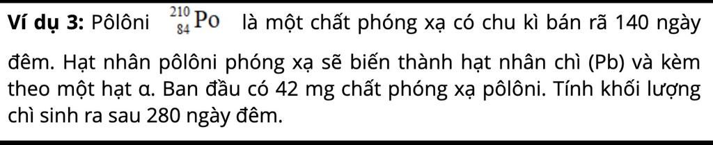 theo một hạt a. Ban đầu có 42 mg chất phóng xạ pôlôni. Tính khối lượng