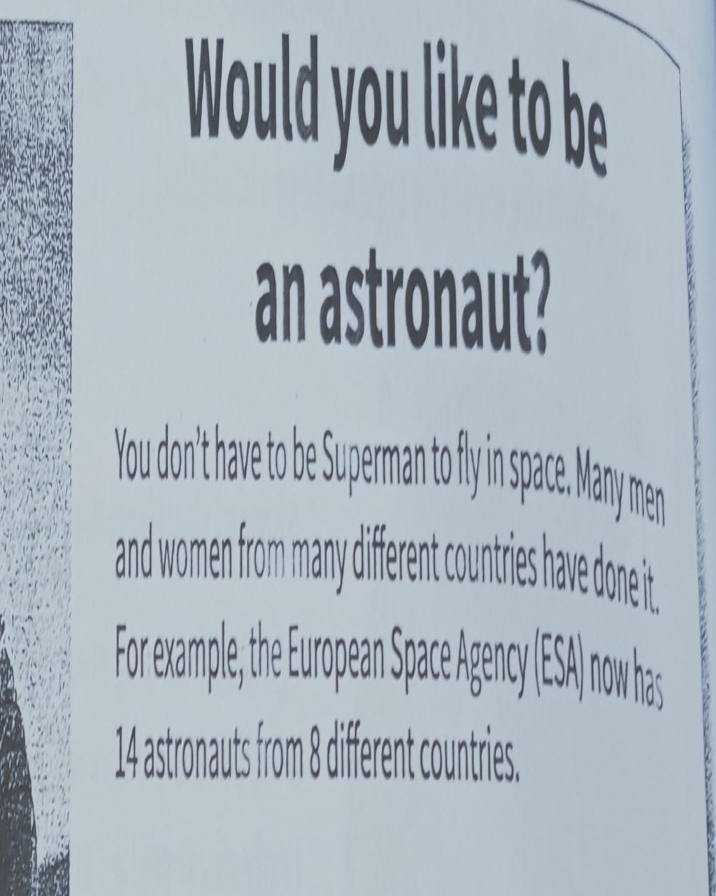 Bạn không cần phải là siêu nhân để bay vào vũ trụ. nhiều người đàn ông và phụ nữ từ nhiều quốc gia khác nhau đã làm được điều đó. Ví dụ, cơ quan Vũ trụ Châu Âu (ESA) hiện có 14 phi hành gia đến từ 8 quốc gia khác nhau.