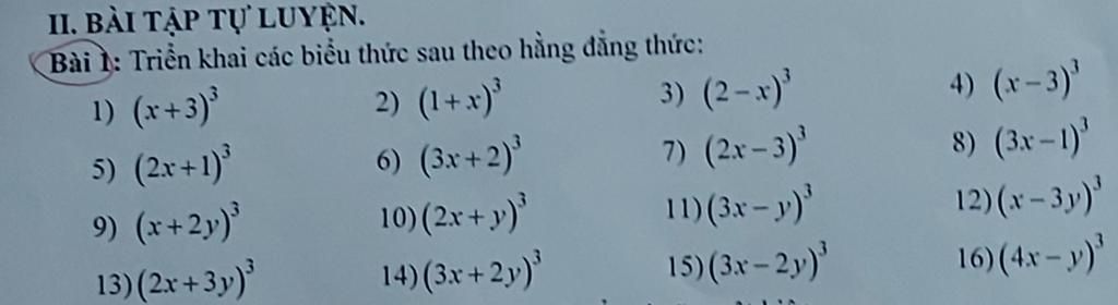 Triển khai các biểu thức sau thành hằng đẳng thức