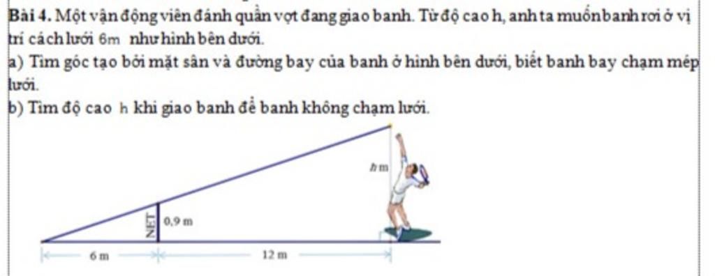 Bài 4. Một vận động viên đánh quần vợt đang giao banh. Từ độ cao h, anh ta muốnbanh rơi ở vị