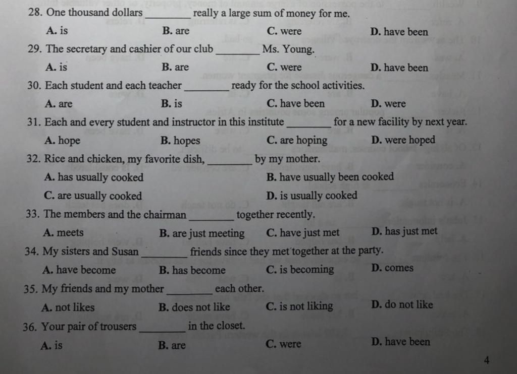 - "One thousand dollars" chỉ tiền , là N không đếm được nên dùng "is"