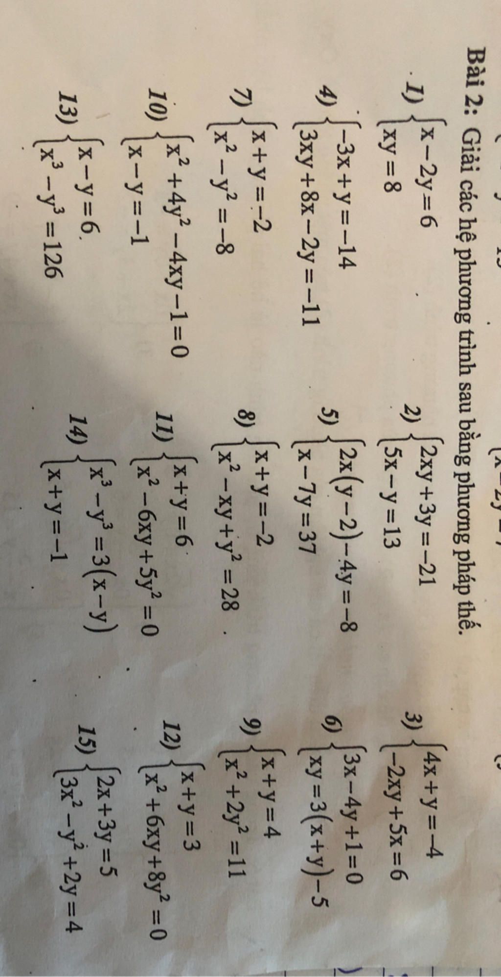 Bài 2: Giải các hệ phương trình sau bằng phương pháp thế.