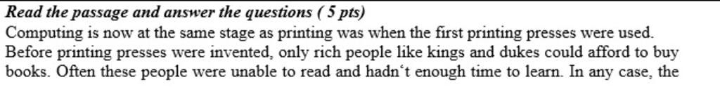 `=>` Thông tin : "Before printing presses were invented, only rich people like kings and dukes could afford to buy books."