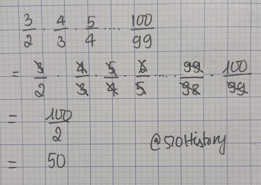 $= \dfrac{\not3 . \not 4 . \not5 ... \not99 . 100}{2 . \not3 .\not4 . ... \not99}$
