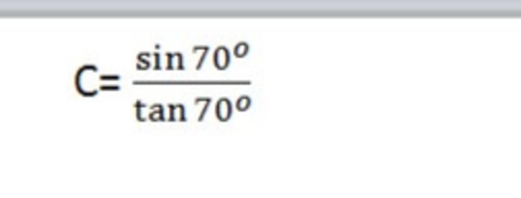 `=> sin(70) : tan(70) = sin(70) : (sin(70))/cos(70) = cos(70)`.