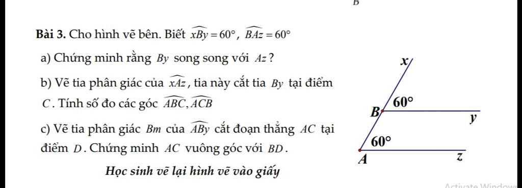 a. Ta có: ∠xBy = ∠BAz = 60 , mà 2 góc này ở vị trí so le trong