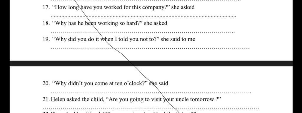 `20.` She asked me why I had not come at ten o'clock