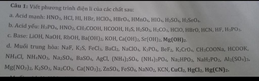 Phương trình điện li :