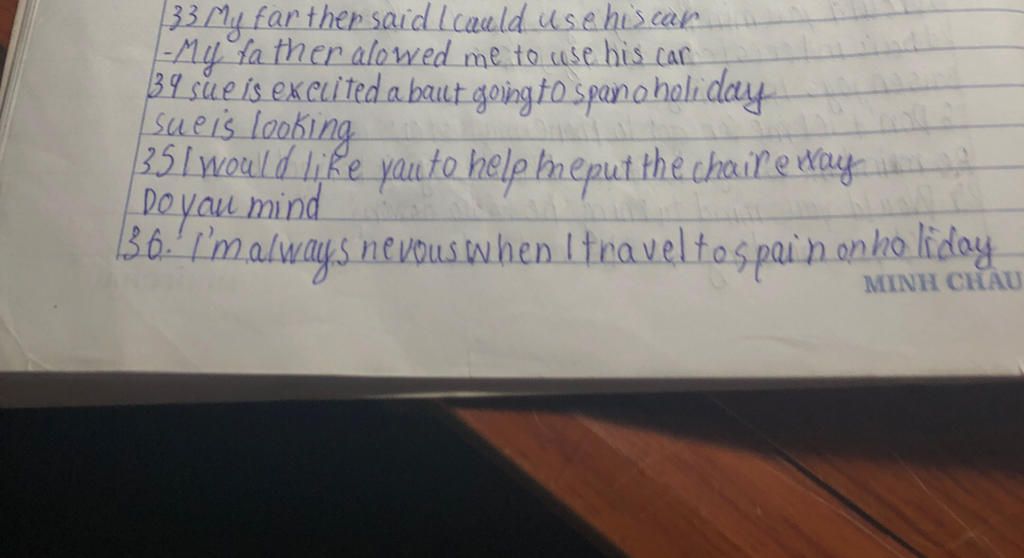 ` 34`. Sue is looking forward to going to Spain for a holiday.