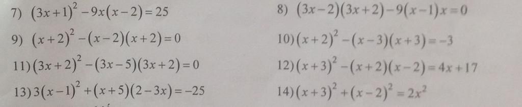`g, 3(x-1)^2 +(x+5)(2-3x) = -25`