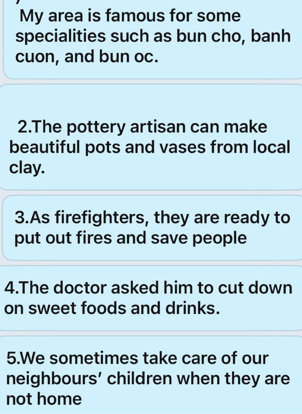 `5`.Chúng tôi thường chăm sóc con của hàng xóm khi họ không có nhà.