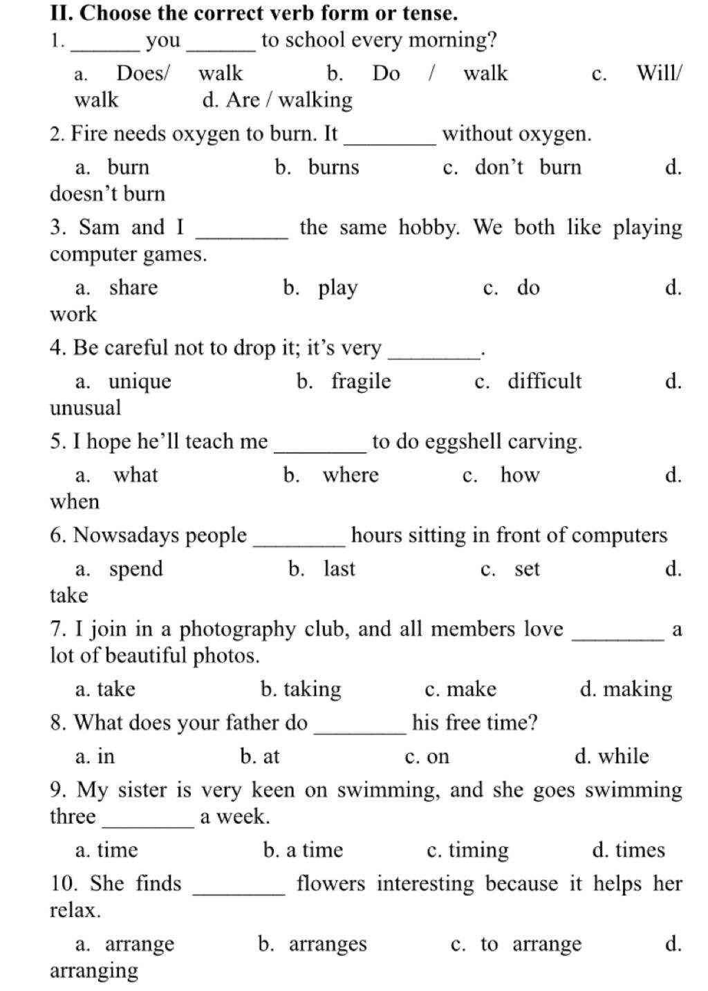 `-` HTĐ `(-)` S + don't/doesn't + V(bare) + O