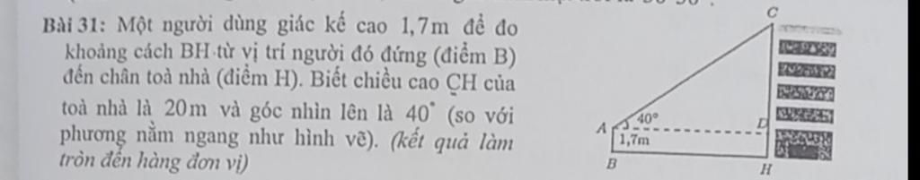`** BH = AD :` là khoảng cách từ người đó đến toàn nhà `20m`