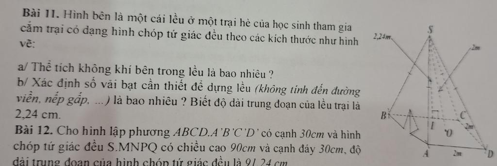 Bài 11. Hình bên là một cái lều ở một trại hè của học sinh tham gia
