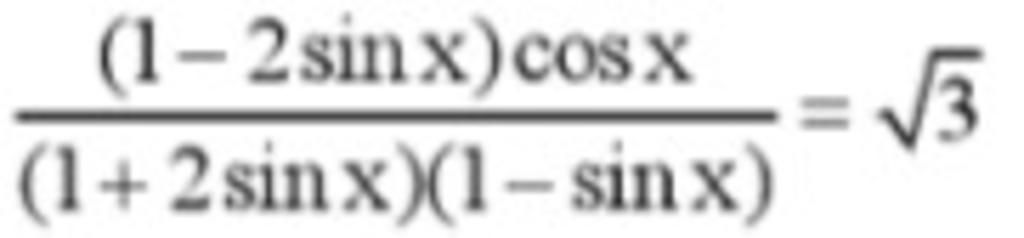 `((1-2sinx).cosx)/((1+2sinx)(1-sinx)) =sqrt3`