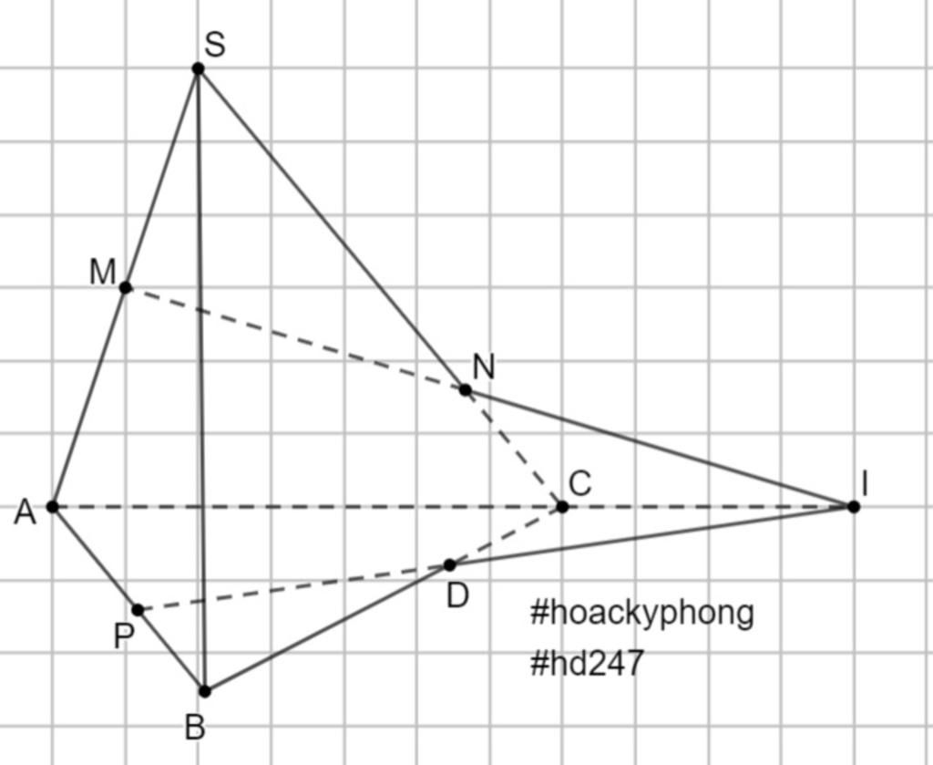 Cho hình chóp S.ABC. Trên cạnh SA và SC lấy M và N sao cho đường thẳng MN cắt AC tại 1. Điểm P thuộc cạnh AB.