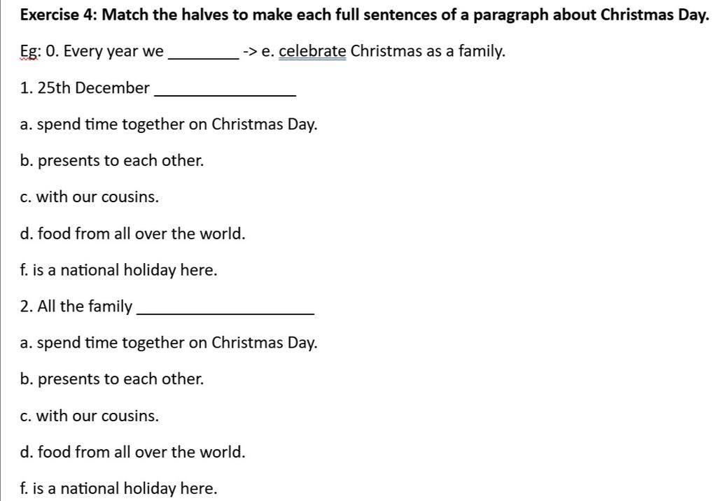 -> 25th December - ngày 25 tháng 12 là ngày lễ hộ kỉ niệm lễ hội giáng sinh ( Christmas Day ) .