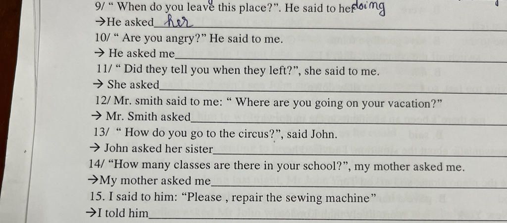 `12)` Mr. Smith asked me where I was going on my vacation.