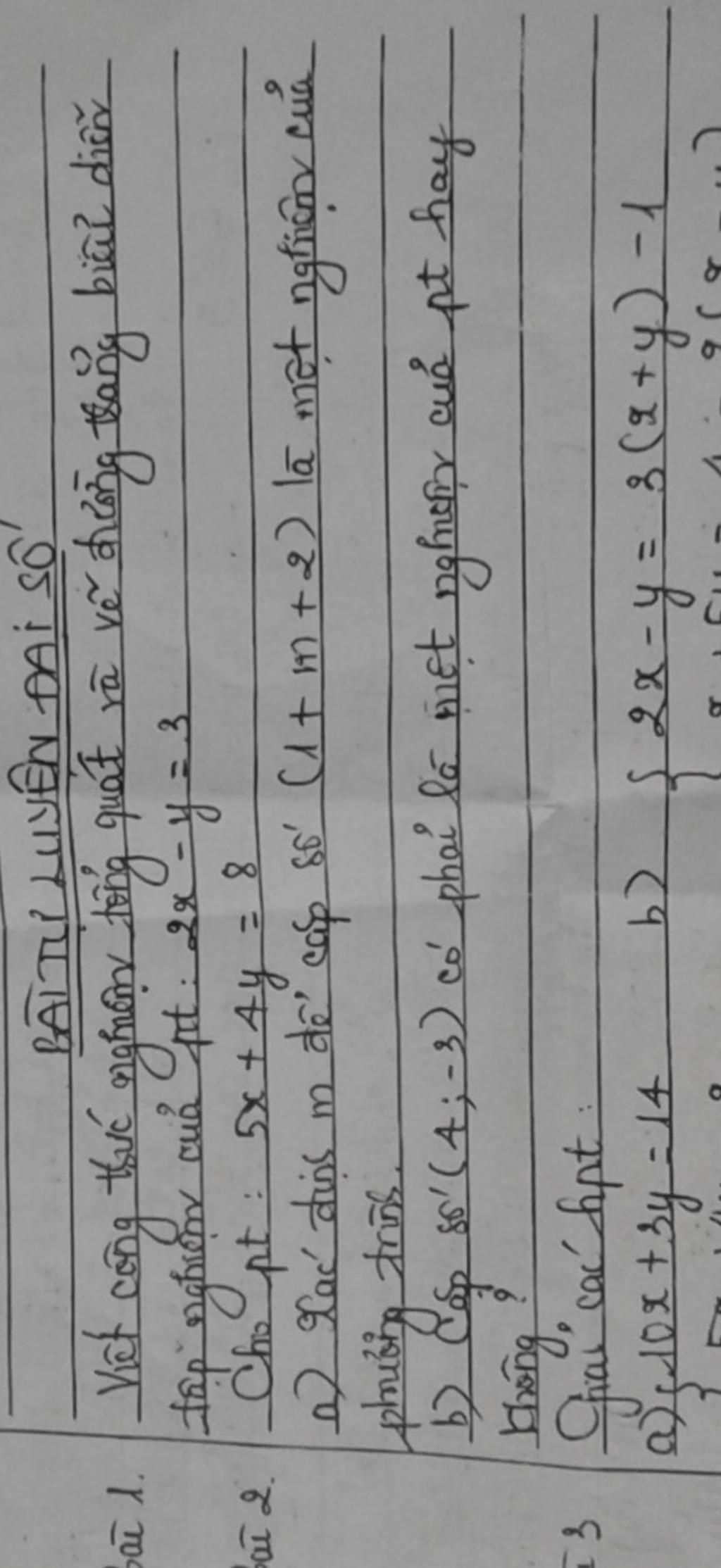 b) Cặp số (1;-3) có phải là một nghiệm của pt hay