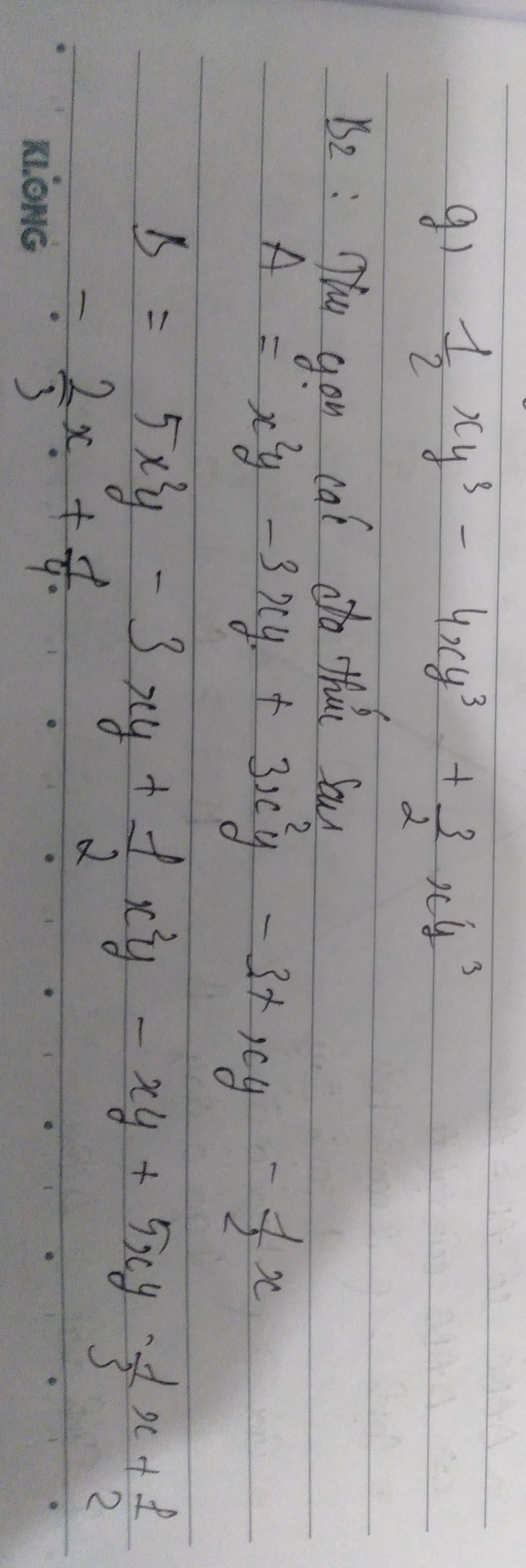 `B = 5x^2y - 3xy + 1/2x^2y - xy + 5xy - 1/3x + 1/2 - 2/3x + 1/4`