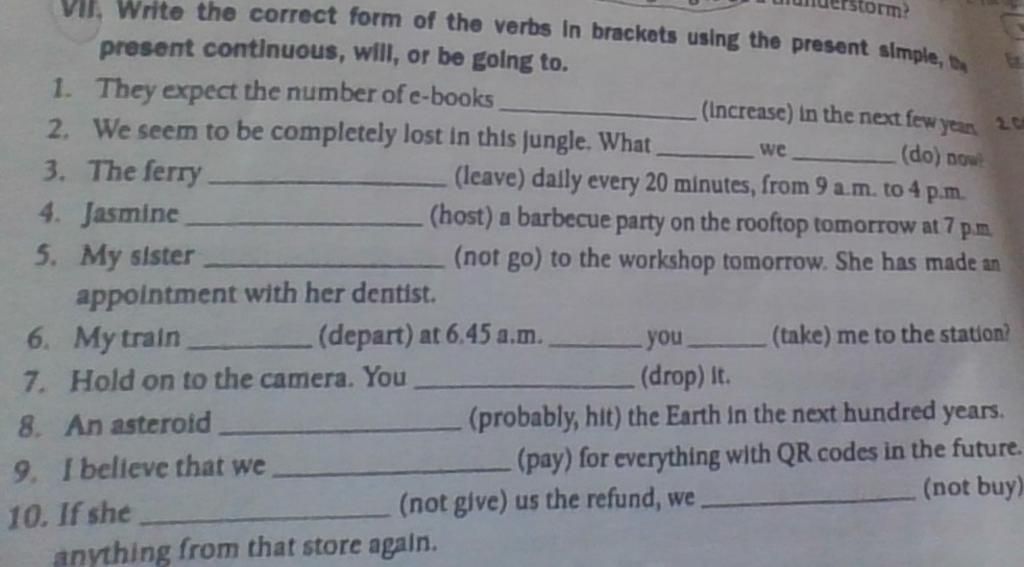 VII. Write the correct form of the verbs in brackets using the present simple, b