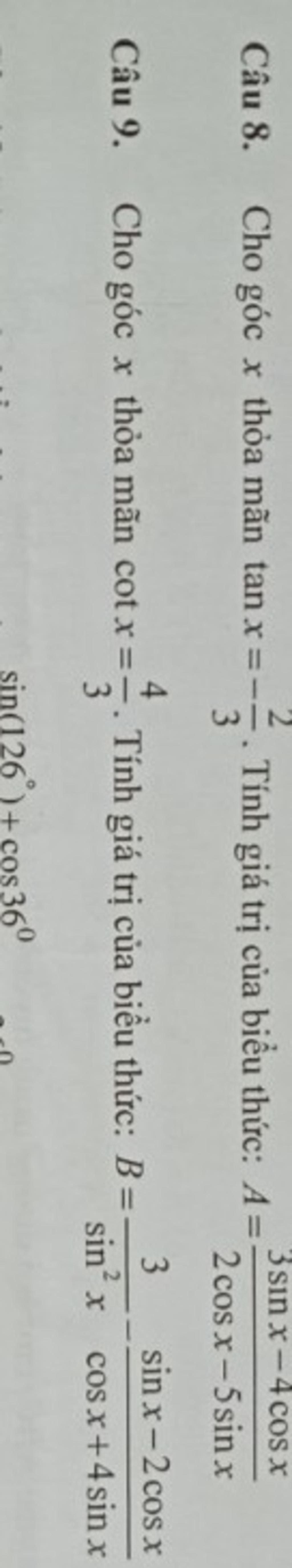 $=3. \dfrac{1}{\sin^2 x}-\dfrac{\dfrac{\sin x}{\sin x}-2.\dfrac{\cos x}{\sin x}}{\dfrac{\cos x}{\sin x}+4.\dfrac{\sin x}{\sin x}}$