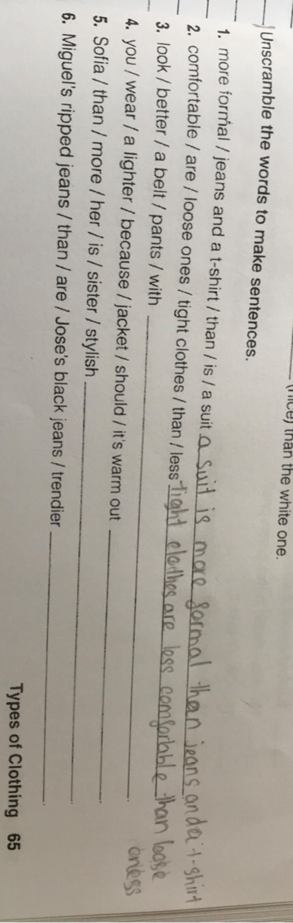 `6` .Miguel's ripped jeans are trendier than Jose's black jeans