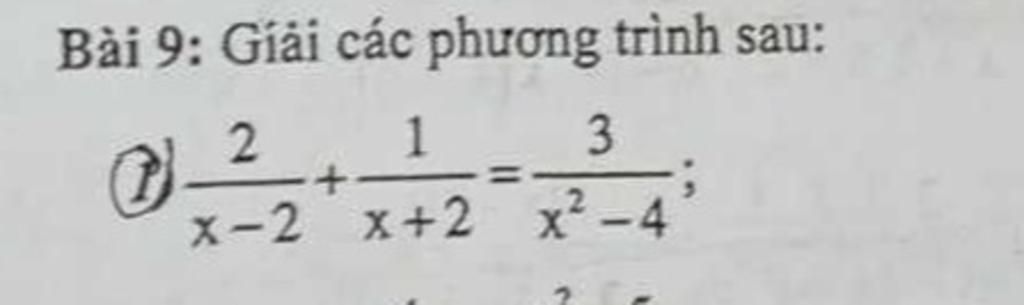 `<=>2/(x-2)+1/(x+2)=3/((x+2)(x-2))`