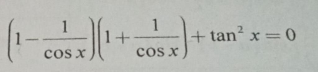 `(1 -1/(cosx))(1+1/(cos x)) +tan^2 x=0`