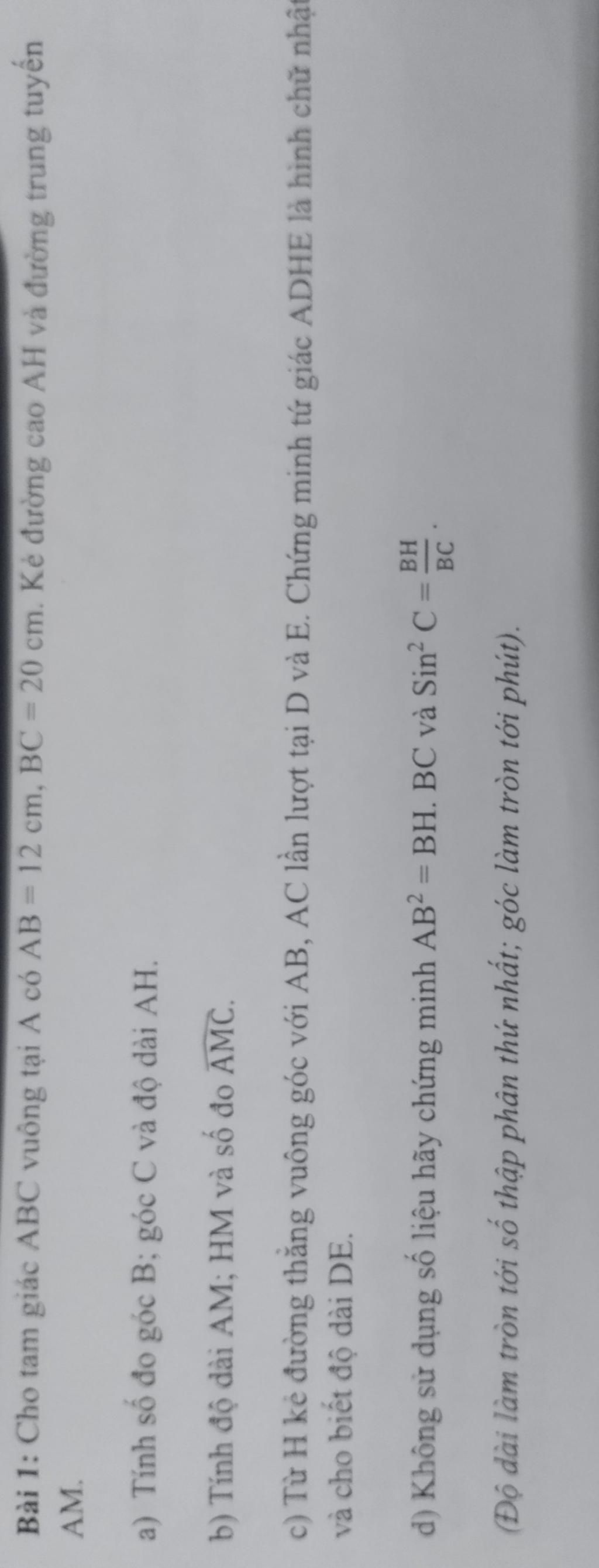 -Tương tự câu a,tính được $\widehat{BAM}\approx 74^{o}$