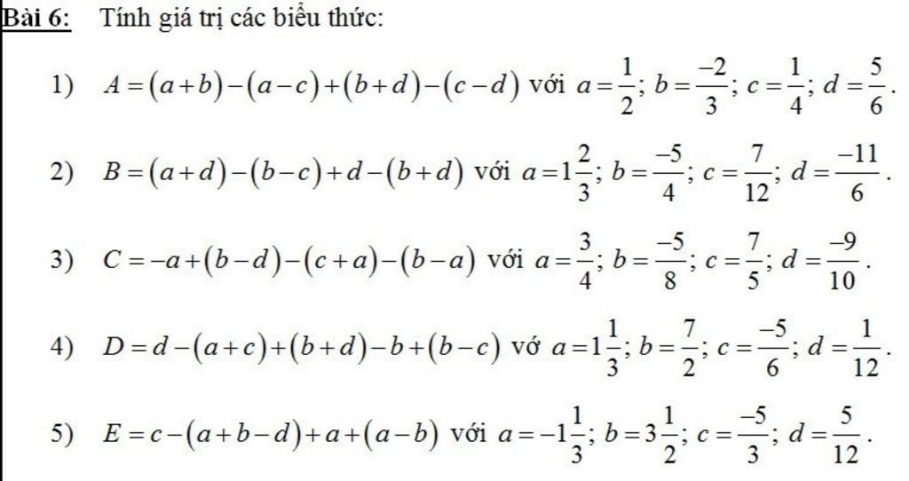 4) D=d-(a+c)+(b+d)−b+(b−c) vớ a=1