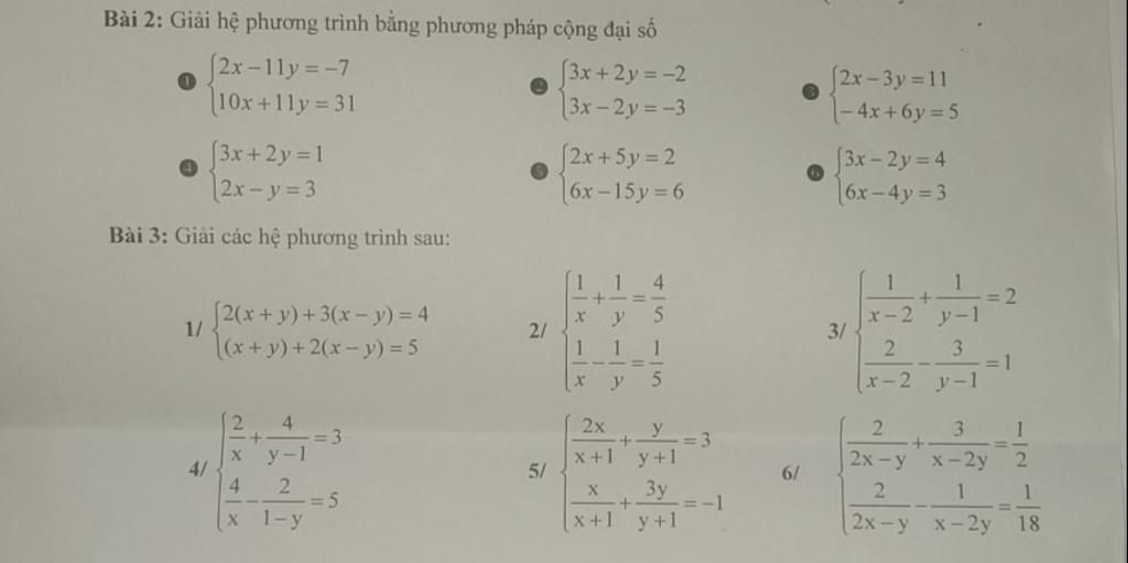 Bài 2: Giải hệ phương trình bằng phương pháp cộng đại số