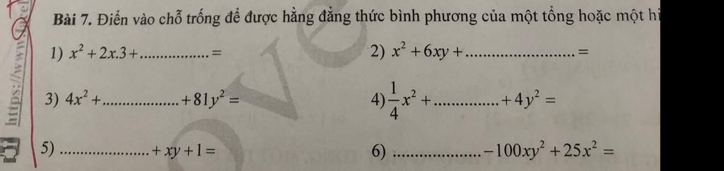 `1,` `x^2+2*x*3+3^2=(x+3)^2`