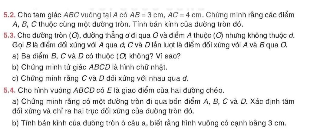 5.2. Cho tam giác ABC vuông tại A có AB = 3 cm, AC = 4 cm. Chứng minh rằng các điểm