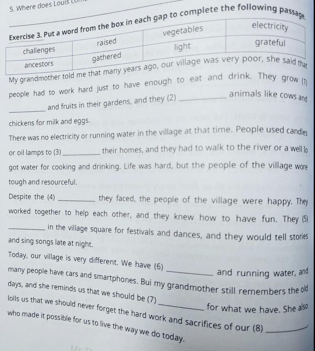 `-` Raised animals like cows and chieckens for milk and eggs: nuôi động vật như bò và gà để lấy sữa và trứng