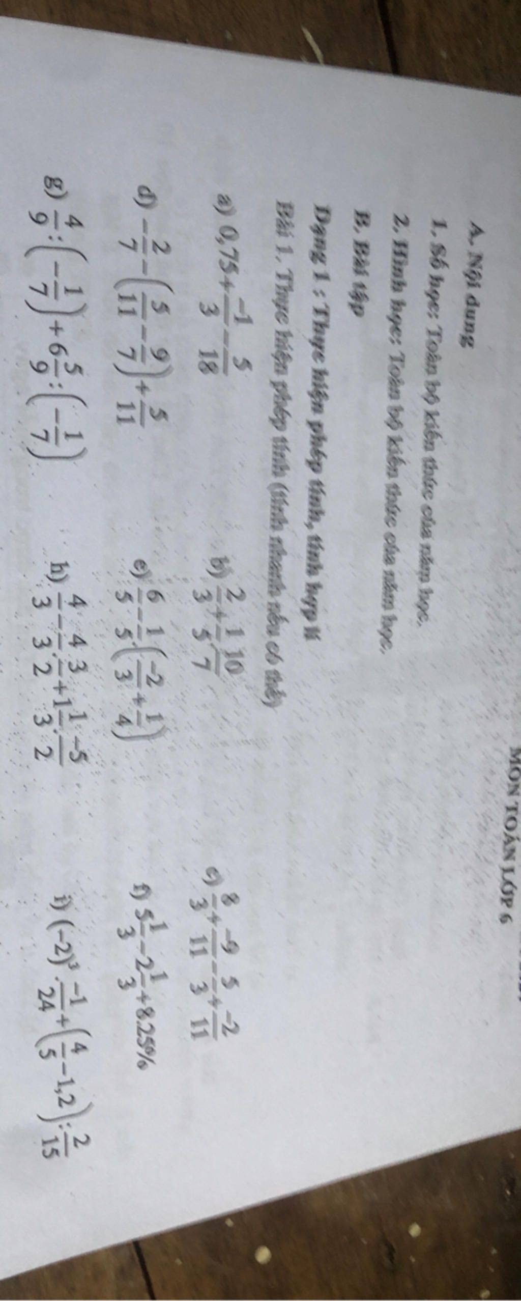 Bài 1, Thực hiện phép tính (ta từ