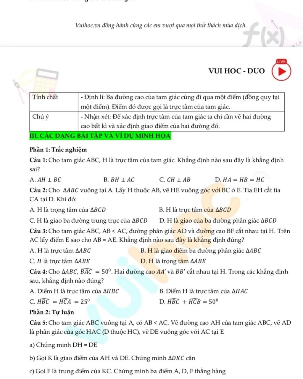 Mà `AD` cắt đường cao `BF` tại `H` nên `H` là trực tâm Δ`AHE`