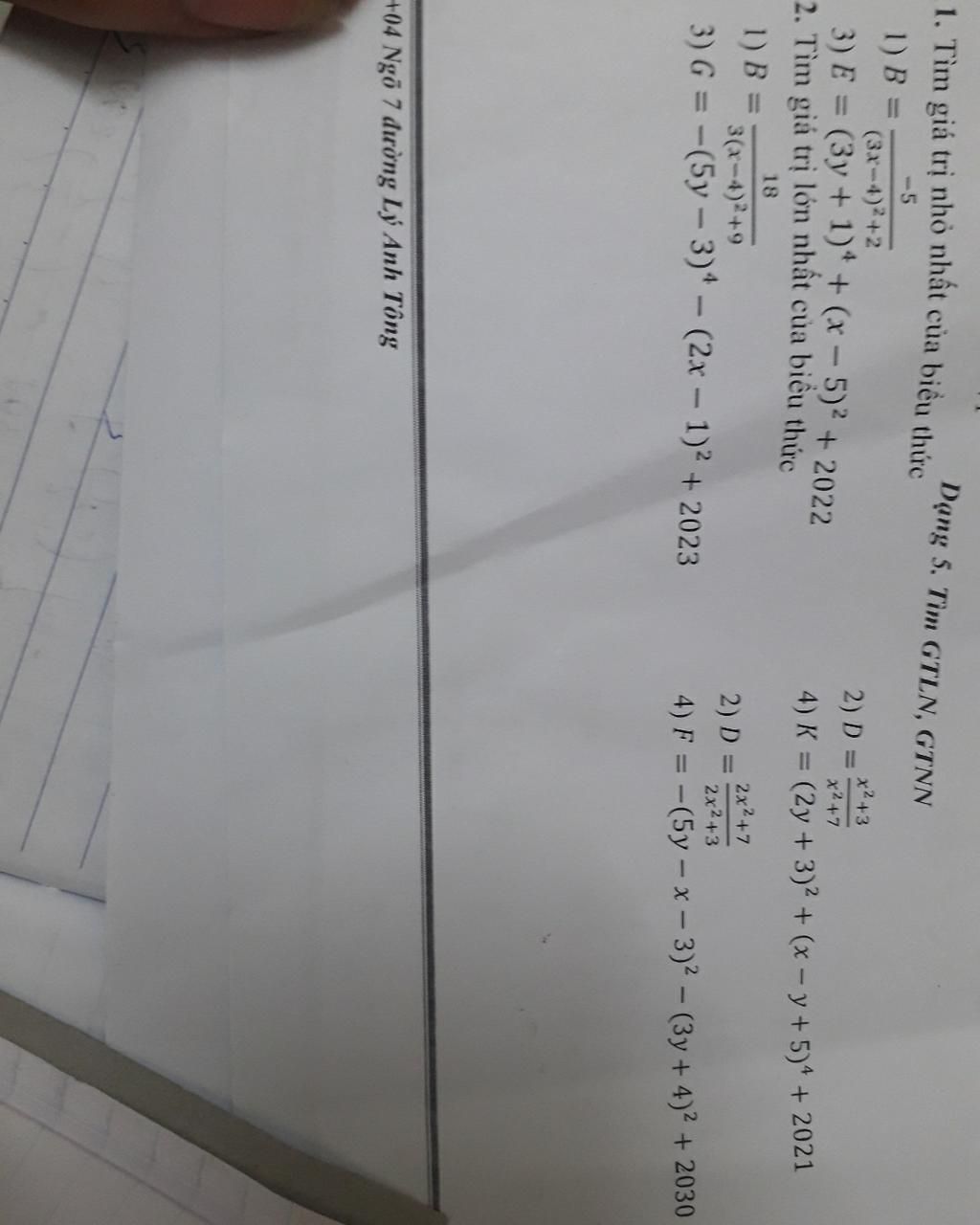 I. Tìm giá trị nhỏ nhất của biểu thức