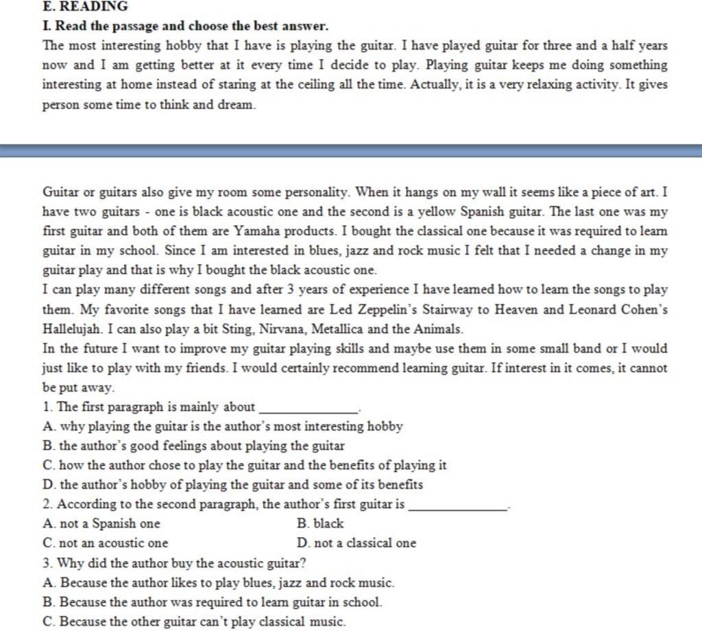`=> D``/C:` The most interesting hobby that I have is playing the guitar..... I have two guitars - one is black acoustic one and the second is a yellow Spanish guitar.