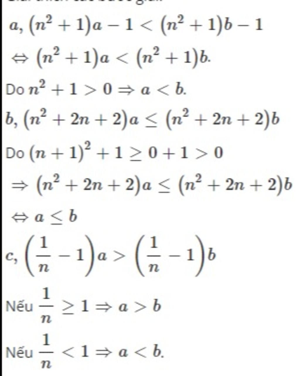 b, (n²+2n+2) × a nhỏ hơn hoặc bằng (n²+2n+2) × b